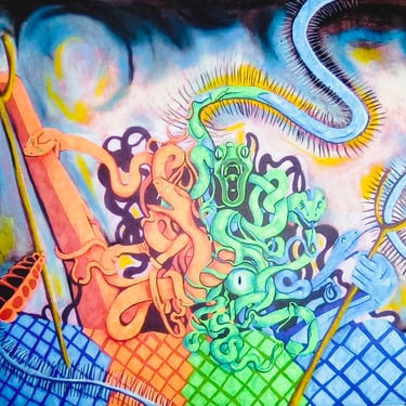Vi Garibay is a multidisciplinary Artist, born in California and raised in Texas. Garibay is self-taught and works predominantly with acrylic paint, spray paint, and oil pastels to convey the emotions felt while creating their whimsical works. Often taking inspiration from their colorful dreams, Vi Garibay strives to rebel against minimalism through the power of vibrant and eccentric expression.